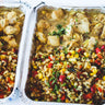 Mijoté de poulet avec raisins, citron, amandes et canelle (goût léger). Servi avec un riz 7 grains au maïs grillé et poivrons.