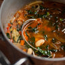 Ingrédients: bouillon de légumes, tomates, carottes, haricots, oignons, brocoli, sel, ail,